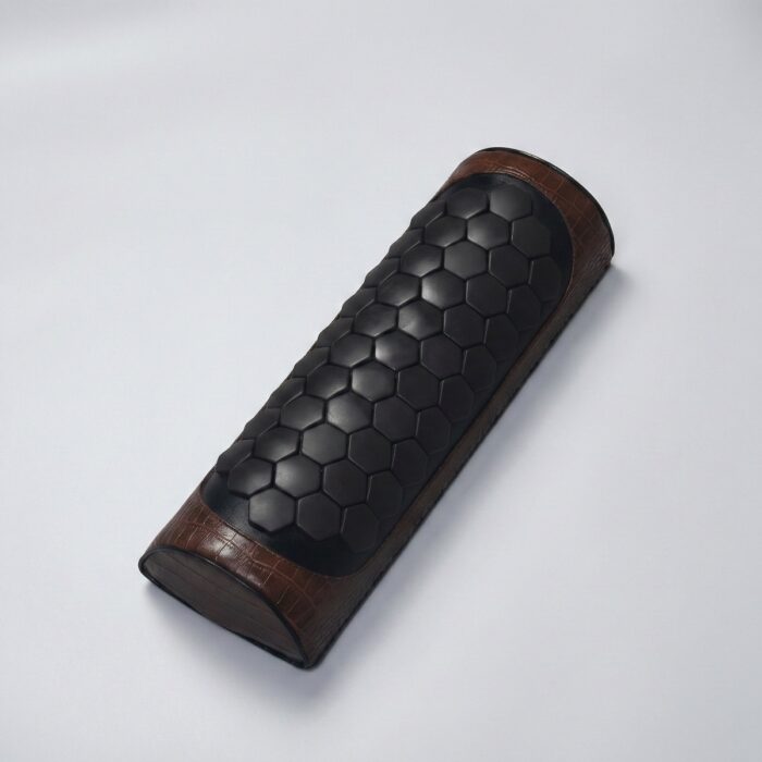 Poduszka 365 to specjalistyczne akcesorium do spania o półcylindrycznym kształcie, zaprojektowane, aby wspierać naturalną krzywiznę odcinka szyjnego kręgosłupa. Pokryta sześciokątnymi elementami bioceramicznymi, zapewnia łagodne wsparcie ergonomiczne podczas odpoczynku, pomagając uwalniać głębokie napięcie szyi i zachować prawidłowe ułożenie ciała. To idealne rozwiązanie dla osób pragnących budzić się bez uczucia sztywności karku.